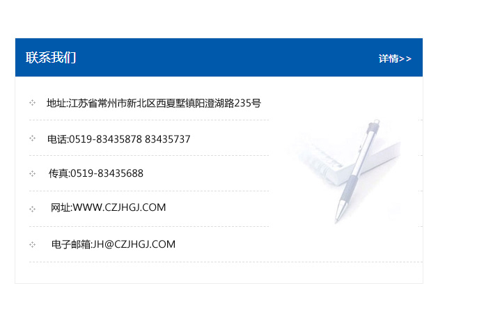 傳真:0519-83435688    郵編:213135    網址:WWW.czjhgj_com.dqzcgl.com    電子郵箱:JH@czjhgj_com.dqzcgl.com